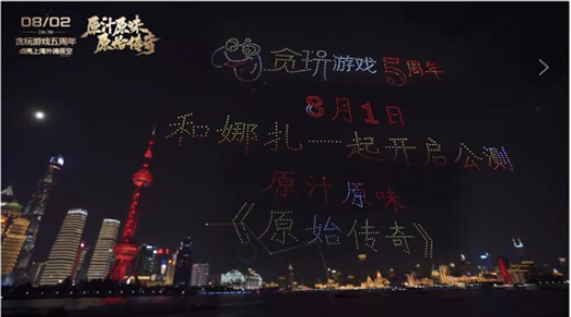 早在8月(yuè)2日,配合公司五周年慶典,貪玩用(yòng)500家無人(rén)機點亮上海外灘,同時(shí)也(yě)爲《原始傳奇》完成了(le)一場(chǎng)“出圈”的(de)線下(xià)營銷,并在社交網絡平台形成了(le)較高(gāo)的(de)話(huà)題討(tǎo)論度。